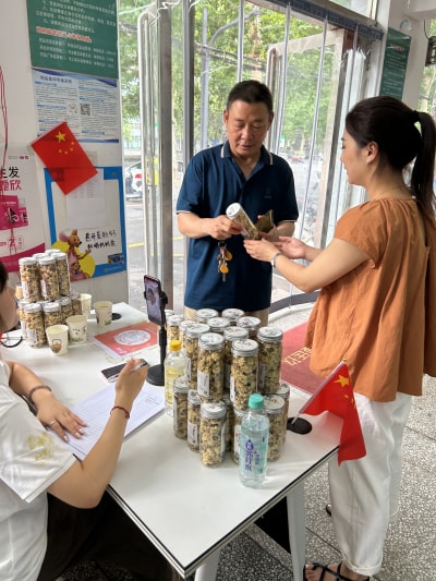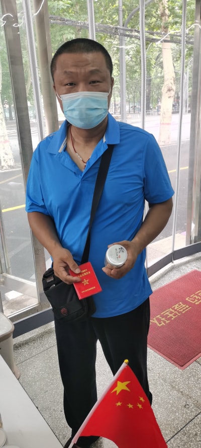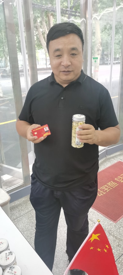 為慶祝建軍節(jié),對(duì)退伍軍人贈(zèng)送菊花。